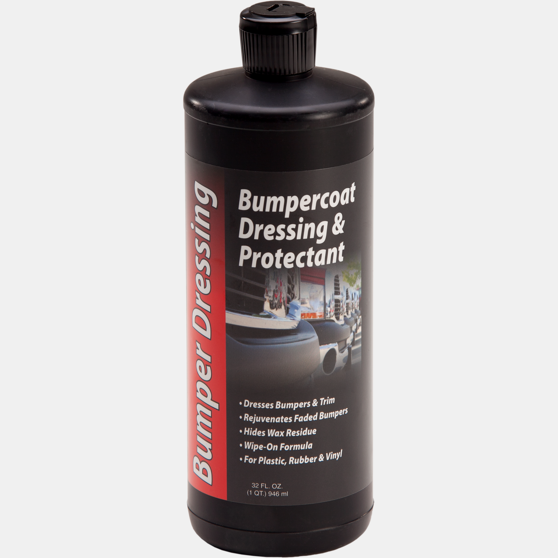 A high gloss, concentrated rubber and vinyl dressing. Bumpercoat restores and protects faded black bumpers, rubber trim, molding and weather trimming. Bumpercoat is a thick silicone liquid that aids in the final detail process by dressing all types of trim and covering excess wax deposits accumulated in the grain of moldings. (Pts.- 12 per case, Qt's.- 12 per case)