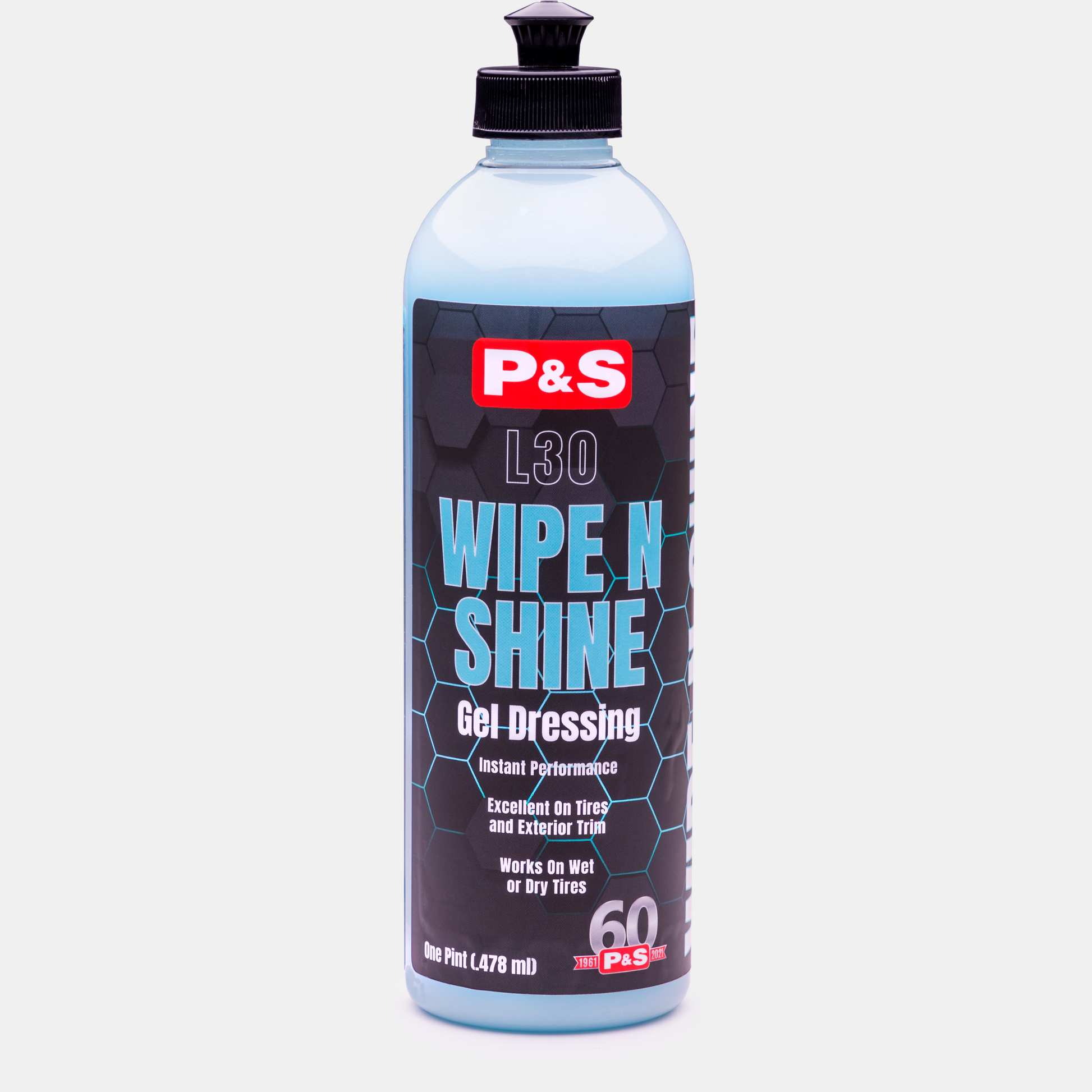 “Wipe N Shine” features new technology originally formulated for use in industrial car wash environments. This new technology has proven to be the exterior and interior dressing of the future. This unique gel dressing may be applied in both dry and wet conditions. No need to use troublesome sprayers. To apply Wipe N Shine, simply wipe on and observe the instant gloss that gets better before your eyes. When used as a tire dressing Wipe N Shine stays in place and does not accumulate on the ground. Use Wipe N Shine to dress tires, exterior trim and interior vinyl and rubber. (Pts.- 12 per case, Gals.- 4 per case, 5's, 30's, 55's)
